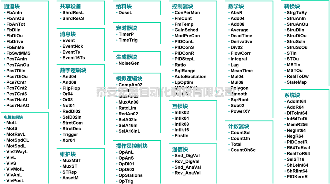 下圖為PCS 7 V9.1 SP1 版本中APL庫提供的所有功能塊,細分可以達19個小類別。