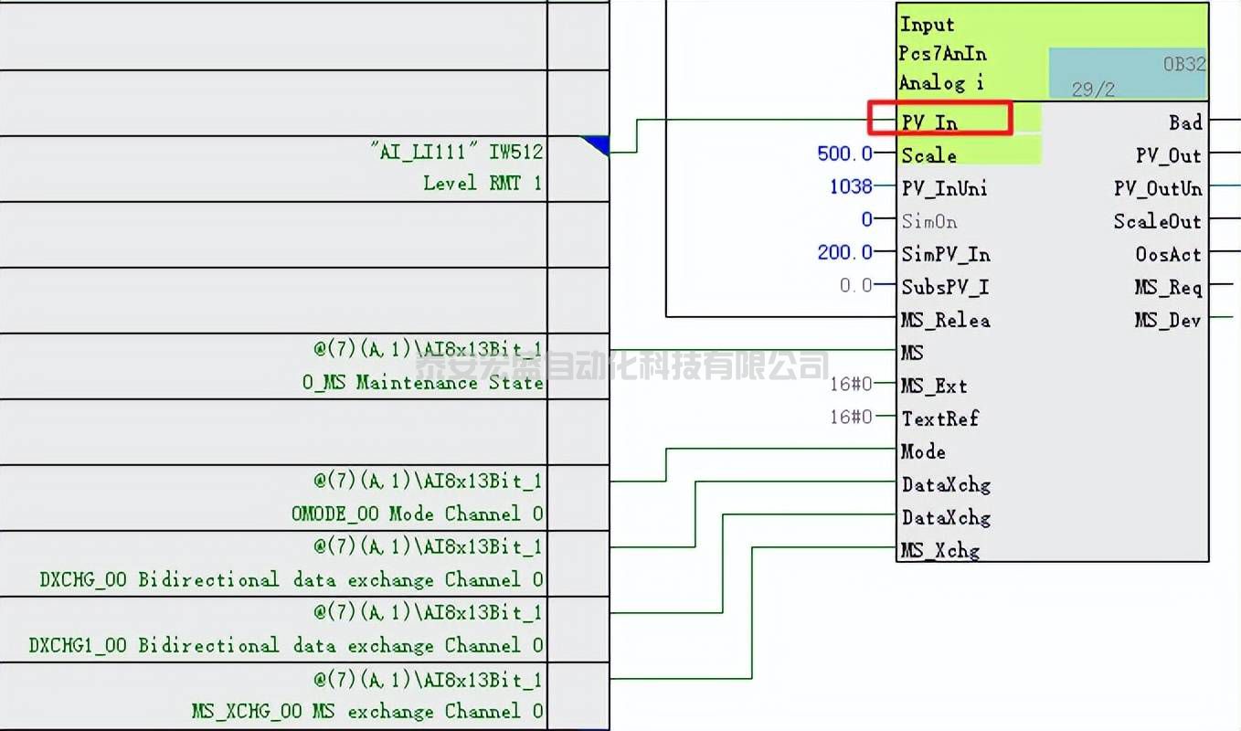 如下圖所示,是標準通道塊Pcs7AnIn的典型應用。只需連接PV_In管腳就大功告成。