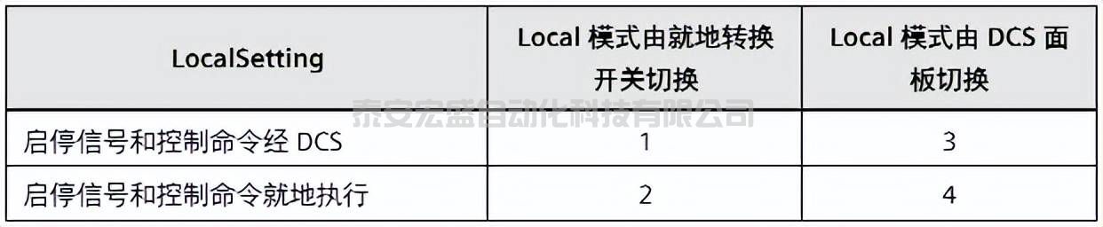 談到電機肯定會涉及到模式切換:就地、遠程。遠程/就地模式的切換及就地啟動方式,各現(xiàn)場因?qū)嶋H電氣控制回路設計不同,需求也可能不盡相同。例如有的現(xiàn)場遠程/就地切換通過現(xiàn)場轉(zhuǎn)換開關(guān)實現(xiàn),就地啟停不經(jīng)過PLC,而別的現(xiàn)場同樣切換方式下可能就地啟停命令經(jīng)PLC發(fā)出。還有的現(xiàn)場遠程/就地模式切換在DCS側(cè)面板中實現(xiàn),現(xiàn)場沒有轉(zhuǎn)換開關(guān)。MotL充分考慮了這種需求,通過LocalSetting設置為不同的值可以滿足不同的應用場合。如下表所示: