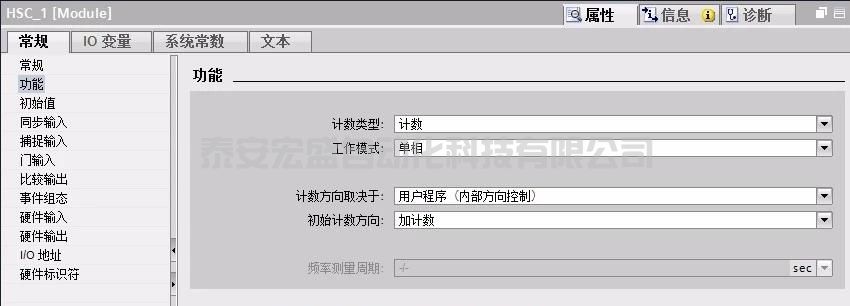 2在設(shè)備視圖>HSC_1>屬性>功能,定義計(jì)數(shù)類型為計(jì)數(shù)。