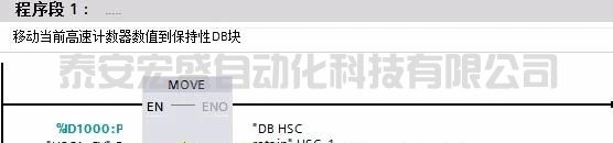 插入 Cyclic interrupt (循環(huán)中斷)OB201,設(shè)置中斷時(shí)間為 10 ms (也可以根據(jù)需要改變這個(gè)時(shí)間)。然后在 OB201 中將高速計(jì)數(shù)器的值 ID1000:P 送到 "DB HSC retain".HSC_1 中。這樣,高速計(jì)數(shù)器的值每10ms 送到 DB 中保存。