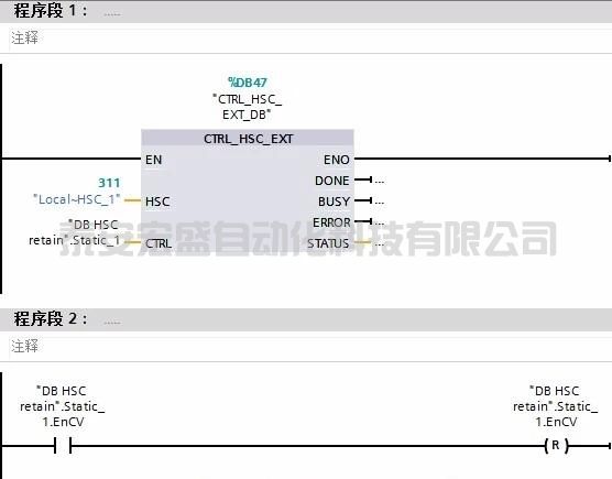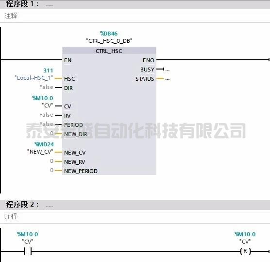 4在 OB1 中編程 CTRL_HSC_EXT ,將保存的值設(shè)為當(dāng)前值后,復(fù)位觸發(fā)位。