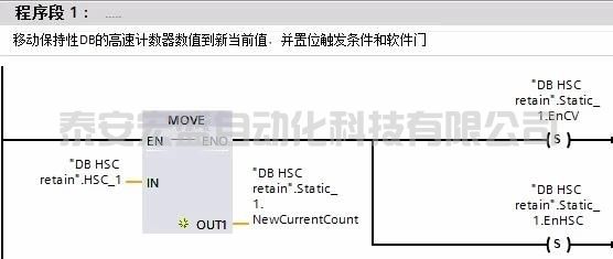 3創(chuàng)建Startup(啟動(dòng)OB)OB100,并且編程將保存的數(shù)值 "DB HSC retain".HSC_1 送到 NEW_CV,并且置位 CV 位。使得在CPU 啟動(dòng)時(shí),保存的值被設(shè)置成當(dāng)前值。