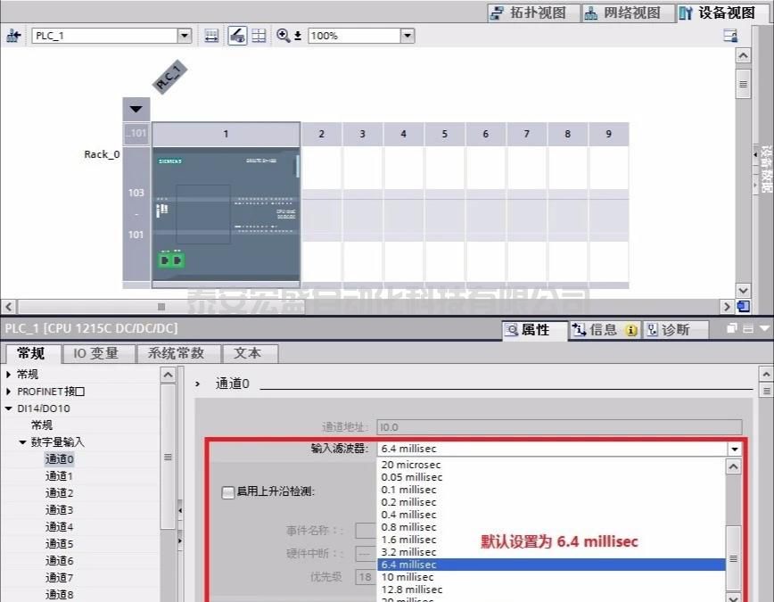 圖 12. 設(shè)置 S7-1200 CPU 輸入濾波器時(shí)間