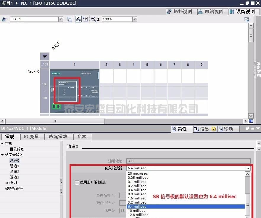 要正確使用 S7-1200 CPU 和 SB 信號(hào)板高速計(jì)數(shù)功能,需要根據(jù)實(shí)際接入的高速輸入脈沖最大頻率,在"屬性—常規(guī)—數(shù)字量輸入通道設(shè)置"輸入濾波器時(shí)間。