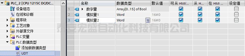 這里通過建立PLC數(shù)據(jù)類型方式把IO區(qū)數(shù)據(jù)與UDT中數(shù)據(jù)一 一對應,1215CPU中輸入輸出分別占用6個字節(jié)的數(shù)據(jù),這樣建立如下圖所示UDT。