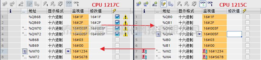 這樣1217控制器可以直接控制1215智能IO設備上的Q區(qū)數(shù)據(jù),同時讀取I區(qū)數(shù)據(jù)。測試結果如下: