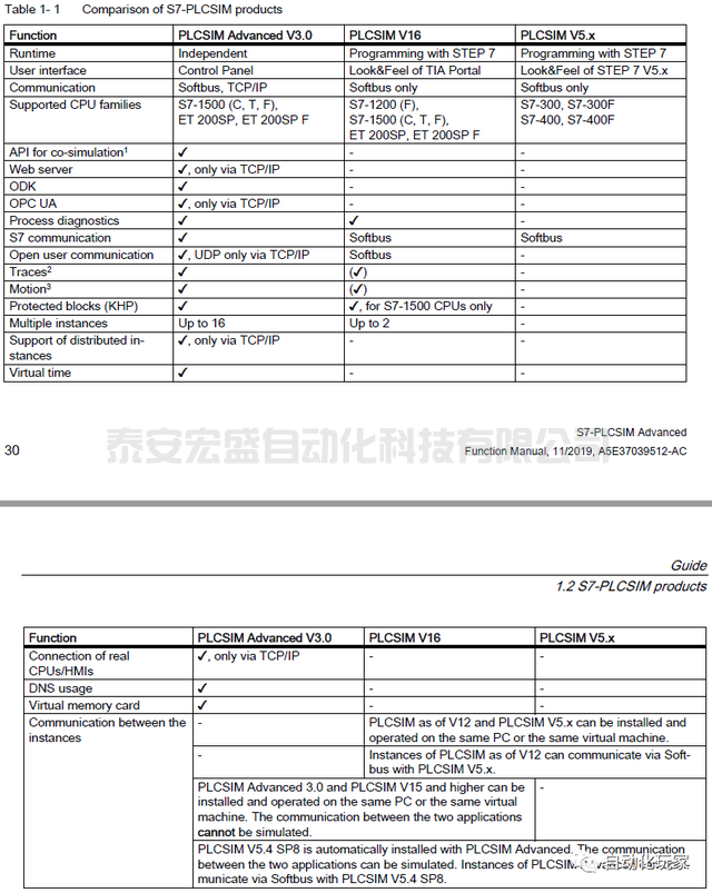 圖1 PLCSIM ADV和PLCSIM功能比較