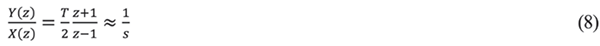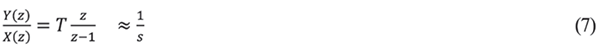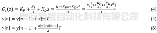 等式 3 不是實(shí)現(xiàn)離散 PID 控制器的唯一方法。另一種可能性是將 PID 控制傳遞函數(shù)從其 s 域(等式 4)轉(zhuǎn)換為 z 域。實(shí)際上,這種轉(zhuǎn)變有兩種方式。兩者都是從離散時(shí)間積分的不同近似推導(dǎo)而來(lái)的。最常見(jiàn)的近似離散時(shí)間積分是矩形(等式 5)和梯形(等式 6)近似。