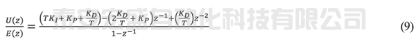 等式 7 和 8 對(duì)應(yīng)于積分項(xiàng),其在 s 域中表示為 1/s。因此,如果取等式 7 右側(cè)的倒數(shù)(s),并用其替換等式 4中的每個(gè) s 算子,則會(huì)得到 PID 補(bǔ)償?shù)囊韵聜鬟f函數(shù)(在z 域中):