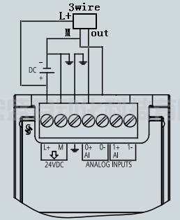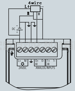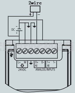 當(dāng)模擬量模塊的輸入通道設(shè)置為電流信號輸入時,電流信號輸出的傳感器根據(jù)線的根數(shù)不一樣,分為二線制、三線制、四線制的傳感器,它們的接線方法是有區(qū)別的。具體看下面的接線圖。