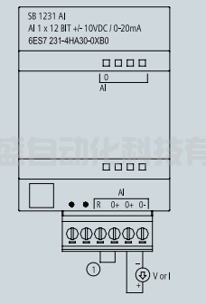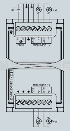 模擬量輸入模塊是SM1231,有4路和8路的模塊,下圖是SM1231 4路的模塊,即一共有4個通道,每個通道有兩個接線端子,比如0 ,0-。