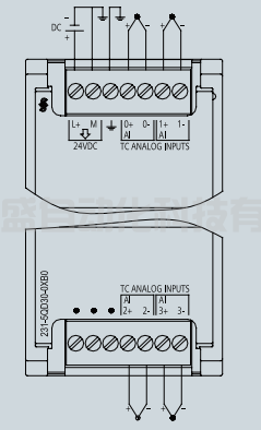 S7-1200 PLC有專用用于對溫度進(jìn)行采集的熱電偶模塊SM1231 TC和SM 1231RTD。熱電偶模塊有4AI和8AI兩種,下面以SM1231 TC 4AI為例看一下接線圖。