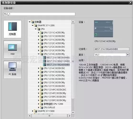 雙擊項(xiàng)目樹(shù)中的“添加新設(shè)備”,選中“添加新設(shè)備”對(duì)話框中的V4.1版的CPU 1214C AC/DC/Rly, 其PN接口的IP地址為192.168.0.1,子網(wǎng)掩碼為255.255.255.0。單擊“確定”按鈕確認(rèn)。