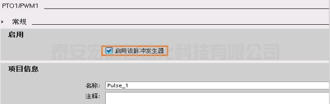 2. 啟用脈沖發(fā)生器,可以給該脈沖發(fā)生器起一個(gè)名字,也可以不做修改使用軟件默認(rèn)設(shè)置值;還可以對(duì)該P(yáng)WM脈沖發(fā)生器添加注釋說明。如下圖1.2所示: