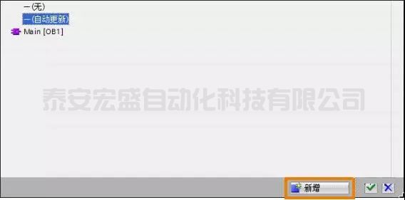c. 組織塊:用來設(shè)置PWM I/O地址的更新方式是基于哪個(gè)OB塊的。用戶可以根據(jù)需要通過“新增”按鈕來添加相應(yīng)的OB塊,如下圖1.8所示,本例中用戶可以選擇默認(rèn)選項(xiàng)“自動(dòng)更新”。