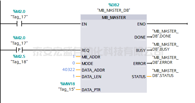 MB_DB:MB_MASTER的背景DB塊2,通過寄存器40100寫入需要的控制字。