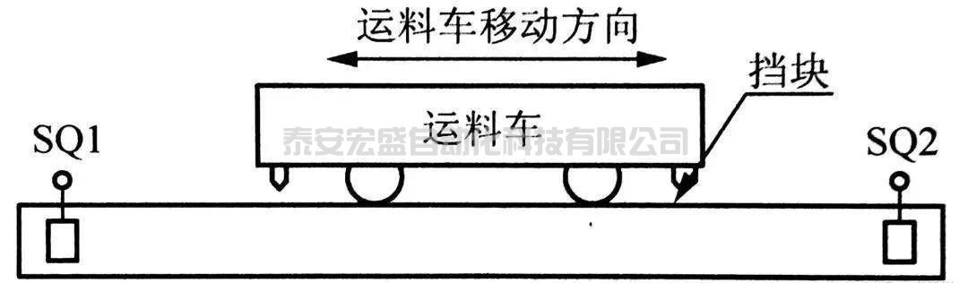 運(yùn)料車由三相交流異步電動(dòng)機(jī)拖動(dòng),可左右運(yùn)行,如圖1所示。具體控制要求如下: