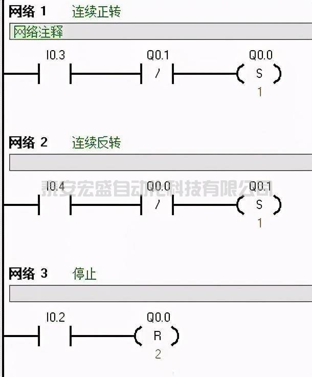 用置位位復(fù)位指令編程也可以實(shí)現(xiàn)電動(dòng)機(jī)連續(xù)控制,其運(yùn)行程序如圖4(1)所示。