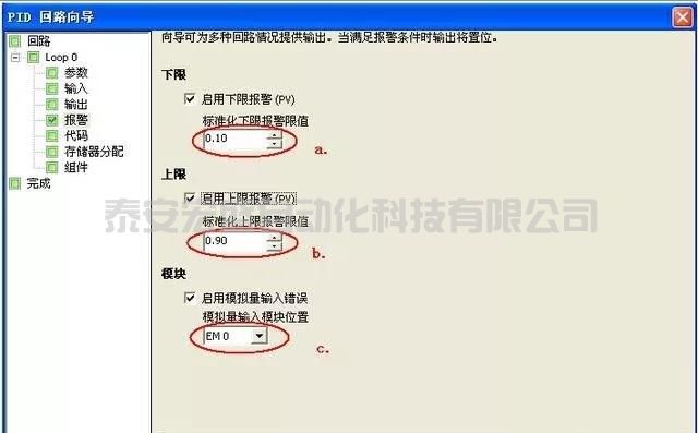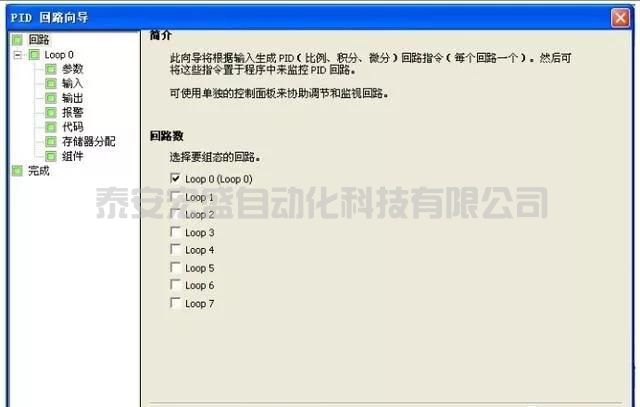 在此對話框中選擇要組態(tài)的回路。最多可組態(tài) 8 個回路。在此對話框上選擇回路時,PID 向導左側的樹視圖隨組態(tài)該回路所需的所有節(jié)點一起更新。