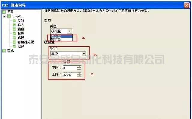 2、選擇模擬量則需設定回路輸出變量值的范圍,可以選擇: