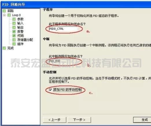 第七步:定義向導所生成的PID初使化子程序和中斷程序名及手/自動模式