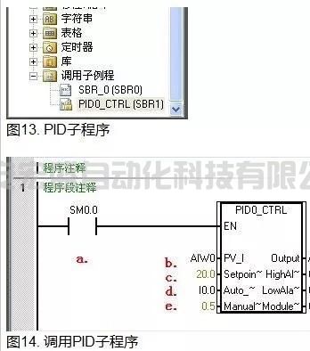 第十步:配置完PID向導,需要在程序中調用向導生成的PID子程序(如下圖)