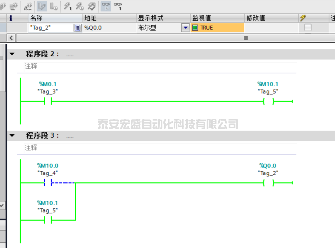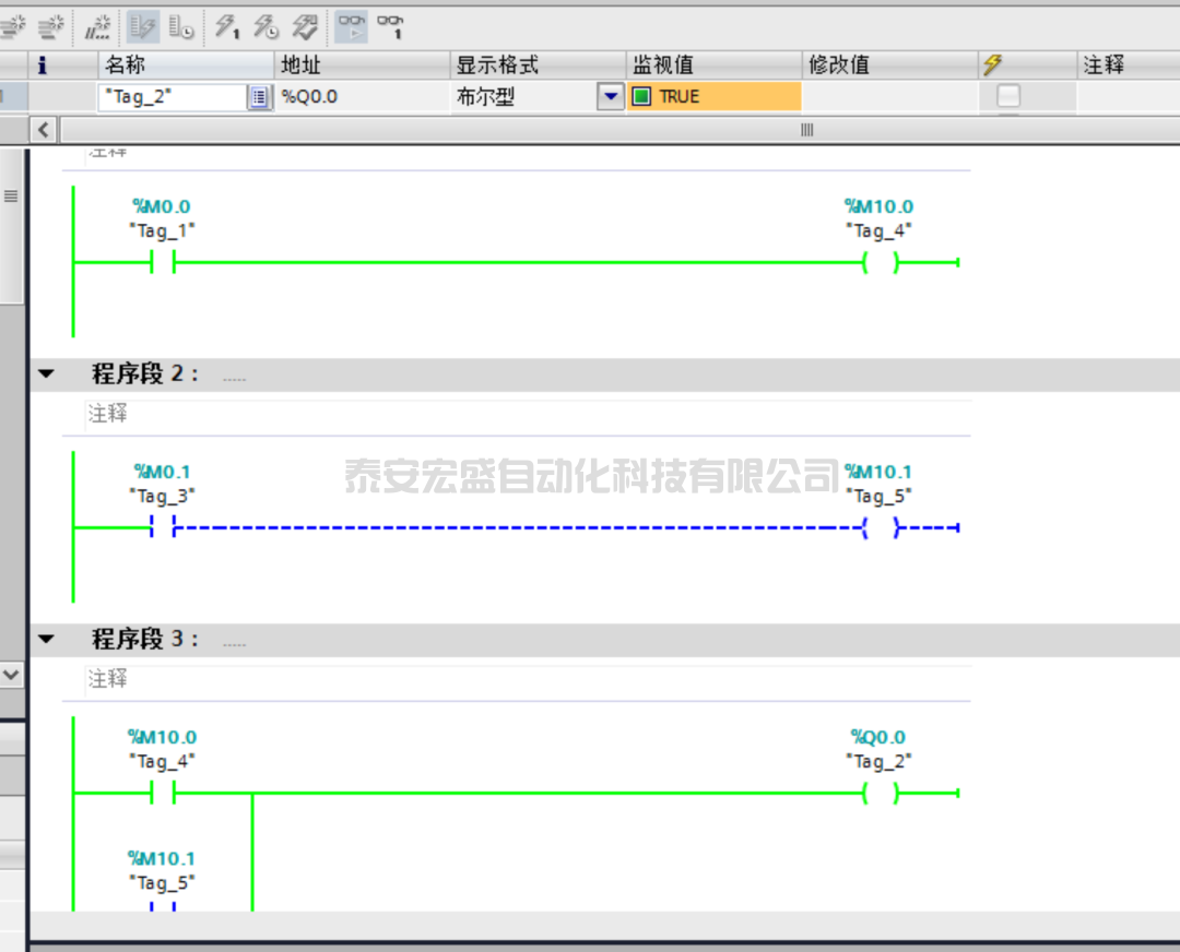 下面進行如下操作,啟動仿真PLC,將啟動監(jiān)控,將梯形圖中M0.0修改為1,M0.0控制的線圈Q0.0得電,在監(jiān)控表中看到Q0.0的監(jiān)視值為FALSE。然后將M0.0修改為0,將M0.1修改為1,M0.1控制的線圈Q0.0得電,在監(jiān)控表中看到Q0.0的監(jiān)視值為TRUE。為什么會出現(xiàn)M0.0觸點不能控制線圈Q0.0值為TRUE,而M0.1觸點可以控制線圈Q0.0值為TRUE,為什么會這樣呢?如果想知道答案接著往下看。