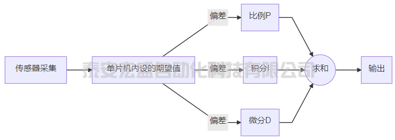 D(微分)環(huán)節(jié):通過偏差的偏差,對控制系統(tǒng)的輸出走向進(jìn)行預(yù)判,起超前調(diào)節(jié)的作用。