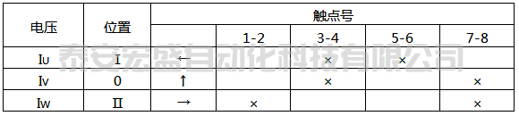 采用LW5-15/YH1型換相開關(guān),其接線如下圖所示,觸點(diǎn)位置見表