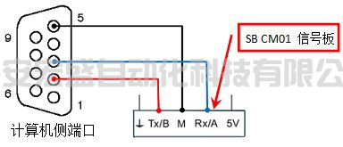 RS232 網(wǎng)絡(luò)為兩臺設(shè)備之間的點對點連接,最大通信距離為15m,通信速率最大為 115.2 Kbit/s 。RS232 連接可用于連接掃描器、打印機、調(diào)制解調(diào)器等設(shè)備。SB CM01 信號板通過組態(tài)可以設(shè)置為 RS232 通信端口,典型的 RS232 接線方式如圖 7. SB CM01 信號板 RS232 連接圖所示。
