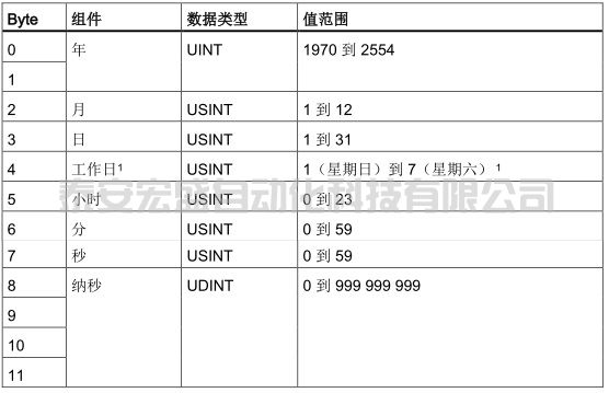 DTL(日期和時(shí)間長(zhǎng)型)數(shù)據(jù)類型使用 12 個(gè)字節(jié)的結(jié)構(gòu)保存日期和時(shí)間信息??梢栽趬K的臨時(shí)存儲(chǔ)器或者 DB 中定義 DTL 數(shù)據(jù)。 必須在 DB 編輯器的"起始值"(Start value) 列為所有組件輸入一個(gè)值。