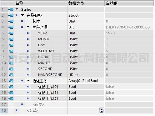 結(jié)構(gòu)所在的DB塊名為“結(jié)構(gòu)示例”,則可以使用 "結(jié)構(gòu)示例".產(chǎn)品規(guī)格.長(zhǎng)度 訪問結(jié)構(gòu)的第一個(gè)元素長(zhǎng)度。
