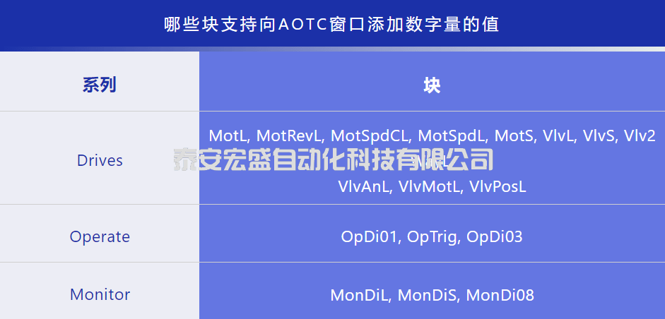 AOTC 不僅局限于添加模擬量,同時(shí)對(duì)于 APL 中的以下功能塊,也集成了添加數(shù)字量到 AOTC 控件的功能。