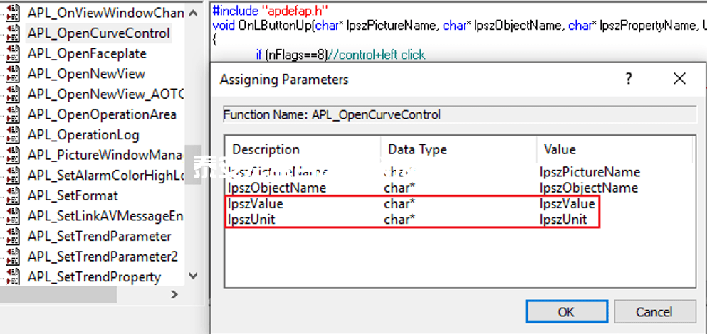 APL_OpenCurveControl 函數(shù)兩個(gè)關(guān)鍵參數(shù) lpszValue 和 lpszUnit: