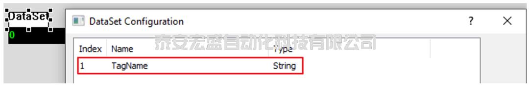 此時(shí)仿照 PCS 7 塊圖標(biāo)的格式,用 DataSet 收集 tagname,從 standard 中拖拽 DataSet 到畫面中,并添加 Index 設(shè)置名稱為 TagName,Type 為 String格式。