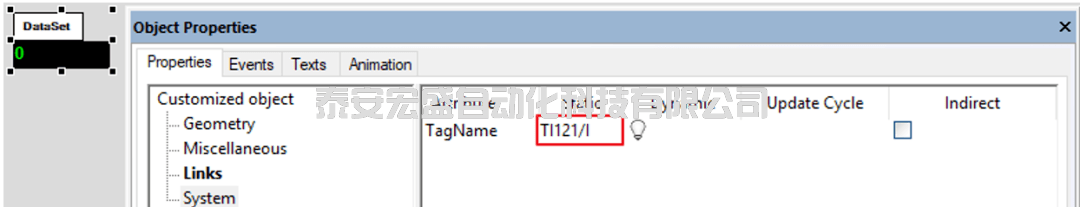 我們以最簡(jiǎn)單的 I/O 域創(chuàng)建一個(gè)自定義對(duì)象來測(cè)試。在2.1章節(jié),MonAnL-APL_OpenCurveControl 的 lpszUnit 參數(shù)賦值使用了 tag,而 MotL 則在 lpszValue 中使用了 tag,所以 tag 為對(duì)應(yīng)的塊圖標(biāo)屬性中的 TagName。