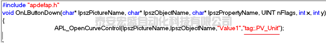 上圖中 Unit 之所以為空,是因?yàn)闆]有給 APL_OpenCurveControl 函數(shù)的lpszUnit參數(shù)賦值所致,修改腳本如下圖(其中 tag 指 tagname):
