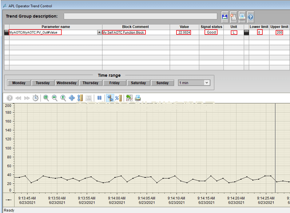 PCS 7 V9.0 之后新增的 AOTC(APL Operator Trend Control)控件應(yīng)運(yùn)而生。從用戶使用的角度出發(fā),通過點(diǎn)擊對(duì)應(yīng)的塊圖標(biāo)(同時(shí)按住 Ctrl 鍵),直接將歸檔變量添加到 AOTC 的趨勢(shì)控件中??梢酝瑫r(shí)添加多個(gè)圖標(biāo)的歸檔變量到同一 AOTC 控件。AOTC 的出現(xiàn),使得最終用戶更加靈活與便捷的創(chuàng)建自定義趨勢(shì)組,而且告別了直接瀏覽歸檔變量的繁瑣方式。AOTC 控件不僅有實(shí)力而且也是“顏值擔(dān)當(dāng)”,提供了更加豐富的顯示和選擇功能: