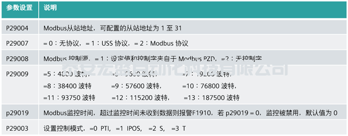 PTI 版本 V90 可以通過 MODBUS RTU 通信實(shí)現(xiàn)速度控制,首先根據(jù)下表3設(shè)置好對應(yīng)的參數(shù):