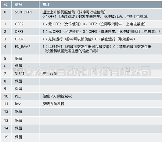注意:固件版本V1.07(不含)以前的版本,速度設(shè)定值地址是 40104 和40105,以下表格為控制字和狀態(tài)字的功能說明: