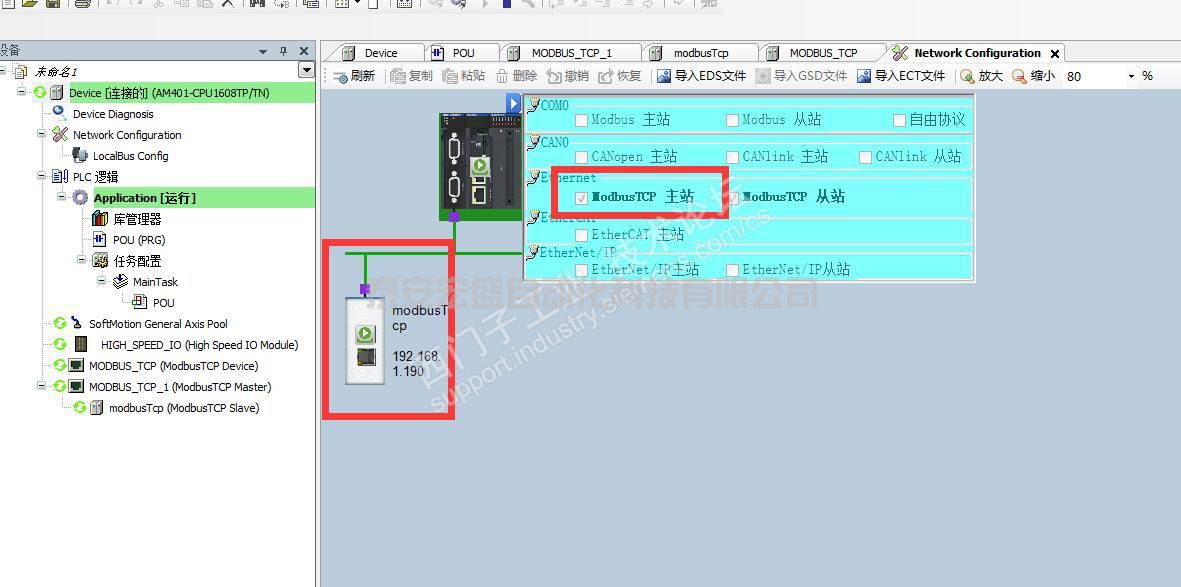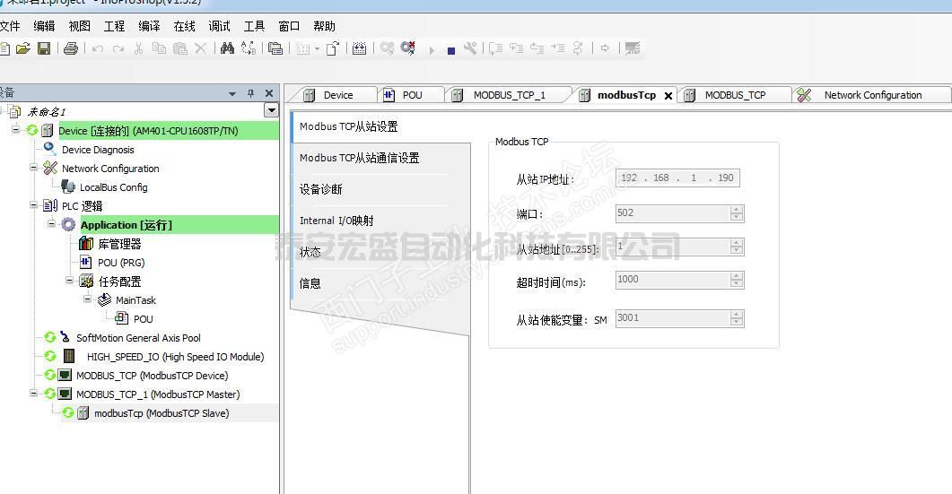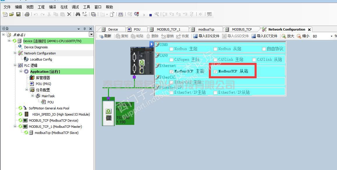 AM401做Server設(shè)置很簡(jiǎn)單,只需要再硬件選擇ModbusTCP從站即可