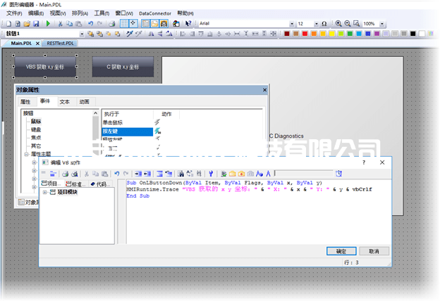 HMIRuntime.Trace "VBS 獲取的 x y 坐標(biāo):" & " X: " & x & " Y: " & y & vbCrlf