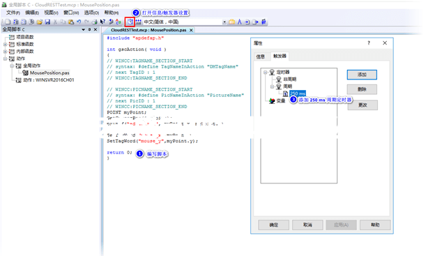 在 C 全局動(dòng)作中添加一個(gè)全局動(dòng)作,并將觸發(fā)器設(shè)置為周期 250 ms