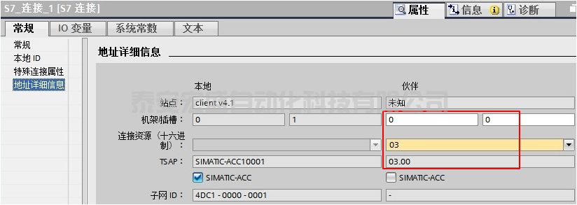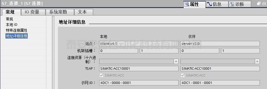 在地址詳細信息中:定義通訊雙方的 TSAP 號,這里不需要修改。