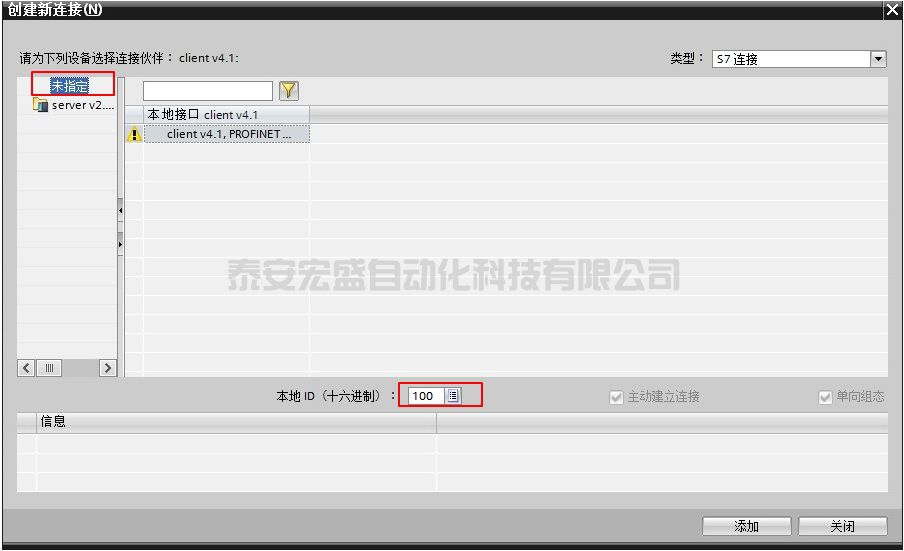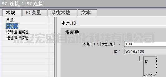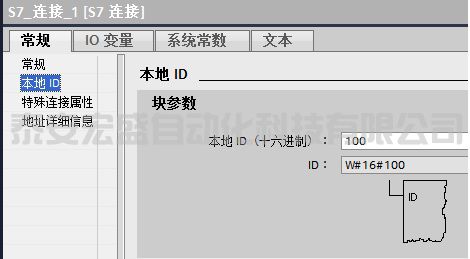 在本地ID中:顯示通訊連接的ID 號,這里ID=W#16#100。