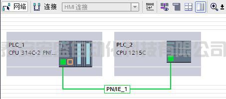 在網(wǎng)絡(luò)視圖下,用鼠標(biāo)點(diǎn)中 S7-300 上的 PROFINET 通信口的綠色小方框,然后拖拽出一條線,到另外一個 S7-1200 上的 PROFINET 通信口上,松開鼠標(biāo),PN/IE_1的子網(wǎng)連接就建立起來了,如圖 6 所示。