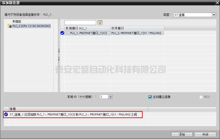 (2) 然后在“添加新連接”窗口中,選擇“PLC_2[CPU1215C DC/DC/DC]”,然后點(diǎn)擊“添加”建立 S7 連接,如圖 8 所示。