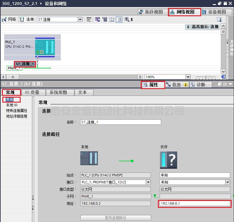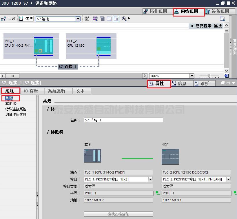 (4)在“網(wǎng)絡(luò)視圖”中,鼠標(biāo)選中剛剛生成的"S7_連接_1",在屬性的常規(guī)選項(xiàng)卡中的"常規(guī)"欄,可查看創(chuàng)建的連接名稱和連接路徑,如圖 10 所示。