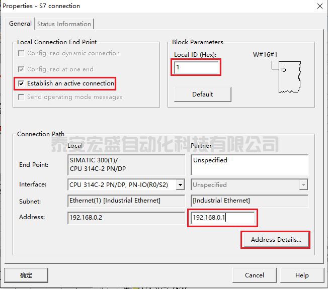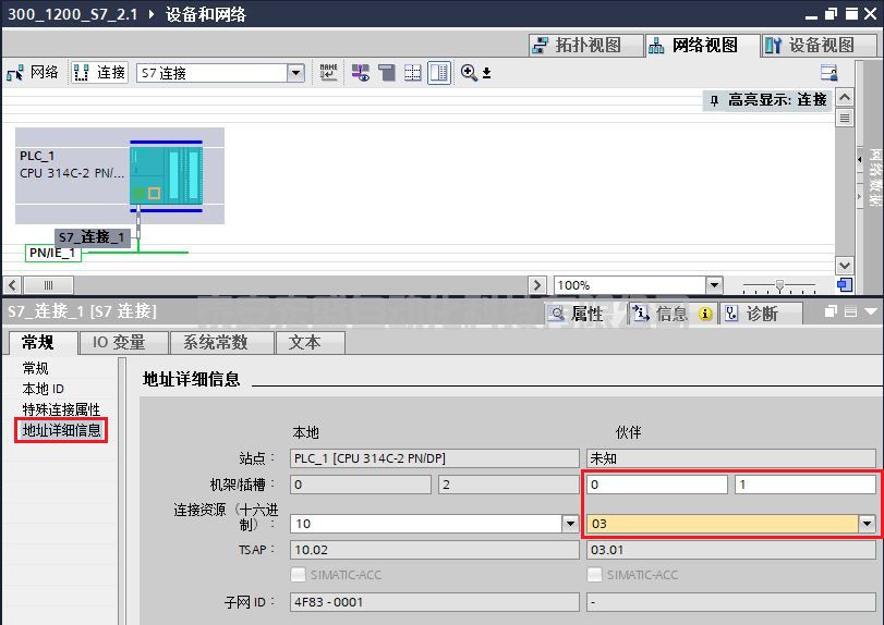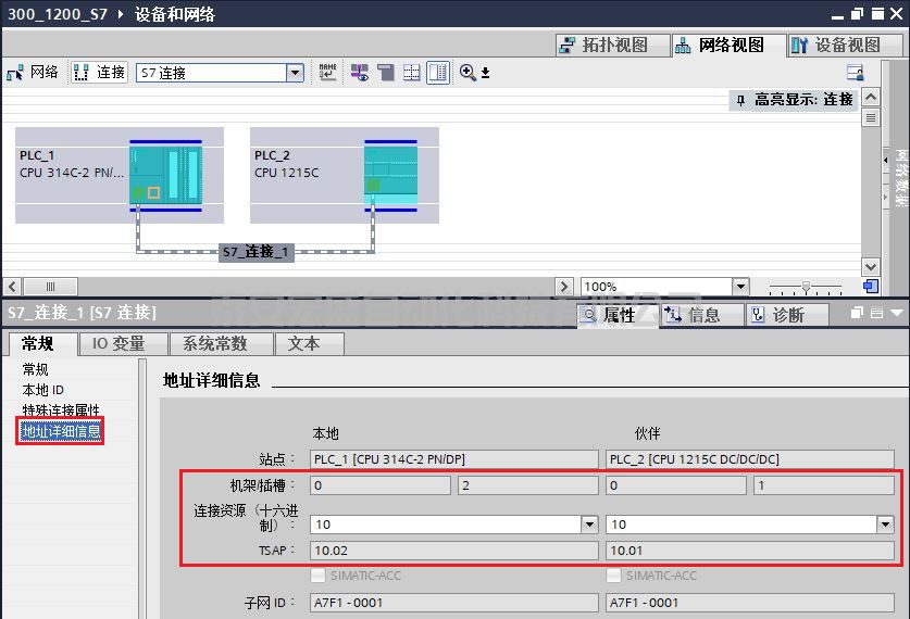 (7)在屬性的常規(guī)選項(xiàng)卡中的"地址詳細(xì)信息"欄,可查看連接的 TSAP 號,如圖 13 所示。